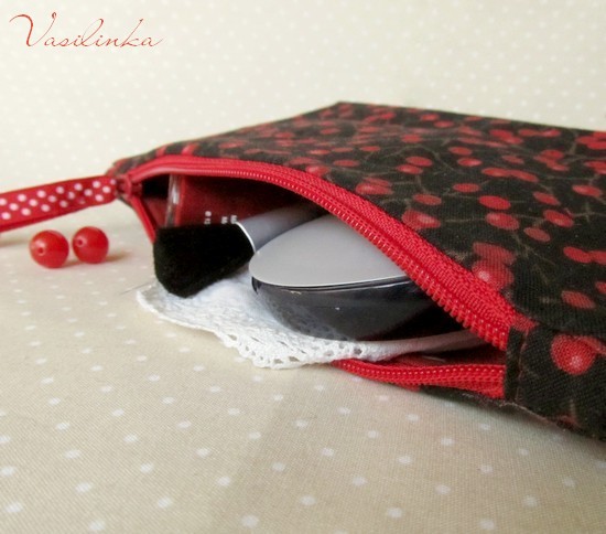 Маме сшила тоже небольшой презентик - косметичку "Вишенки".